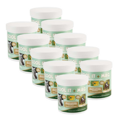 Cool-it + Mag Powder is a complementary feed supplement calmer for horses containing supplementary levels of Magnesium and Tryptophan, which have an important role in the maintenance of normal nerve function. It is suitable for addition to the feed of nervous, hot or highly strung horses.
