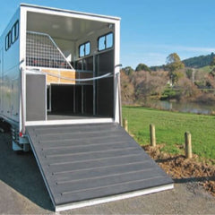 This is a one piece truck ramp matt, with 22mm high cleats moulded into the matt to stop your horse slipping when getting up into the truck, size is fixed at 2.4m wide X 1.2m long.