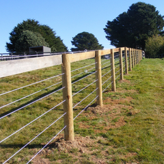 Border Line is a white, high strength, specially formulated, solid polymer monofilament (containing no steel). When strained up, it will protect and restrain horses like no other. It is a polymer fencing system that replaces steel wire fences as a safer choice for your stock.