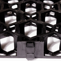 The GroundHex Stabilizer is made from recycled polypropylene in a honeycomb grid structure. This design makes it lightweight, easy to install, and extremely durable under the pressure of both horses and cattle. Panels come pre-clipped for quick installation and can be cut to size when needed.